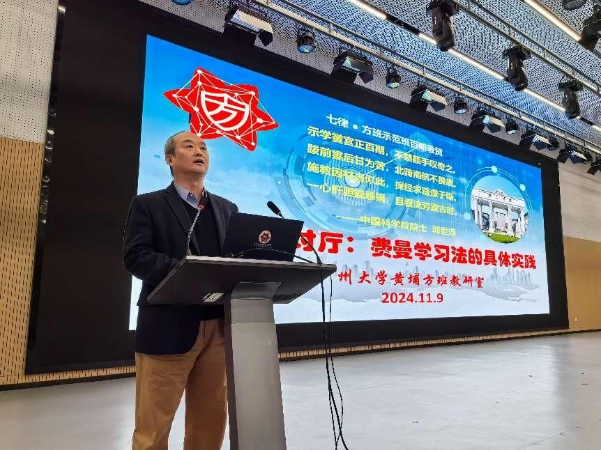 在报告中,方滨兴通过深入浅出的语言,系统阐述了“费曼学习法”的核心,即通过“教别人”来加深对问题的认知,将复杂的知识简化到能够清楚、简明地向他人解释的程度,实现“隐性思维显性化的过程”,并结合他在网络安全领域的丰富实践经验,向师生们展示了如何通过“输出式学习”提升学习效率,巩固学术基础。作为费曼学习法的具体实践,方班研讨厅以“求源、熵减、动手、思辨”作为培养学生的主要教学目标,通过“调研-演讲-问答-辩论-点评-总结”的教学形式,不断培养学生的创新与思辨能力,帮助我校提高学术研究的能力与深度,有力地证明了方班教学模式的有效性。
