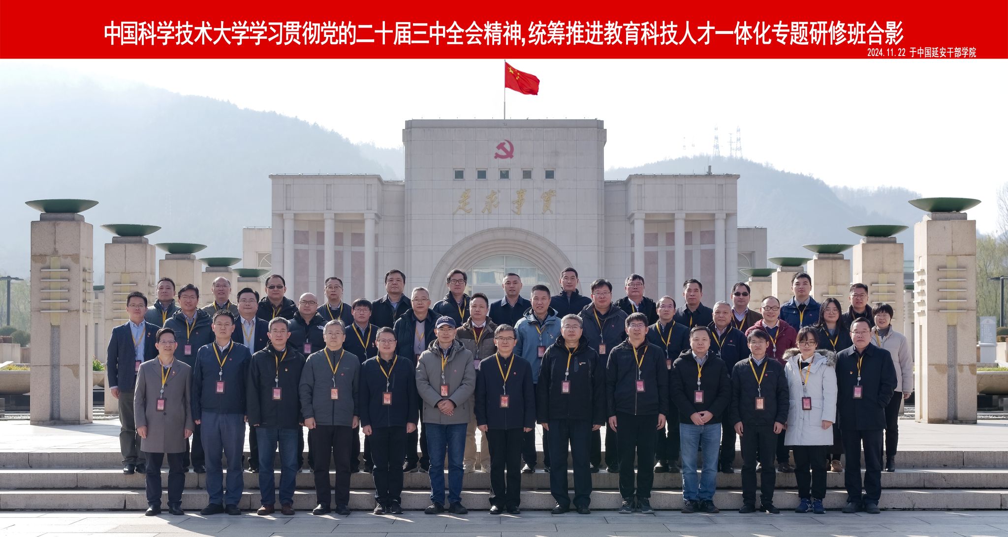 11月21日至24日,中国科学技术大学学习贯彻党的二十届三中全会精神、统筹推进教育科技人才一体化专题研修班在中国延安干部学院举办。学校双肩挑干部和高层次人才共36人参加培训,校党委常务副书记蒋一以视频的方式出席开班式并作动员讲话。