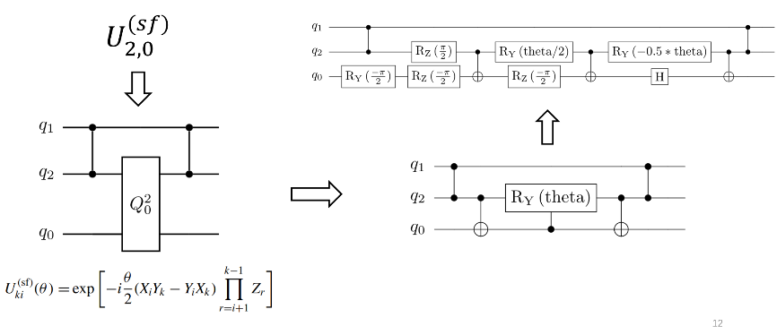 Mapping算法赛道的赛题重点在于如何根据芯片拓扑状态和线路需求,寻找最优比特映射方案。而量子电路化简赛道则聚焦于优化量子—经典混合算法,期望在设计变分量子本征求解(VQE)算法的过程中,降低量子电路深度。由计算机学院研究生李永尚、陈铭瑜和邓皓苧组成的“柯南队”在张昱老师的指导下,针对量子电路化简赛题,研制了一个与众不同的方案。他们没有选择直接化简量子电路,而是先将由基础量子门组成的量子电路转换为由费米子激发算符组成的unitary coupled cluster ansatz,再重新合成量子电路。通过更高效的合成方法极大地优化了电路的两比特门数和深度。最终,评委通过对实现性能、方法创新等维度的考察,从Mapping算法赛道、量子电路化简赛道作品中评出“柯南队”为特等奖。