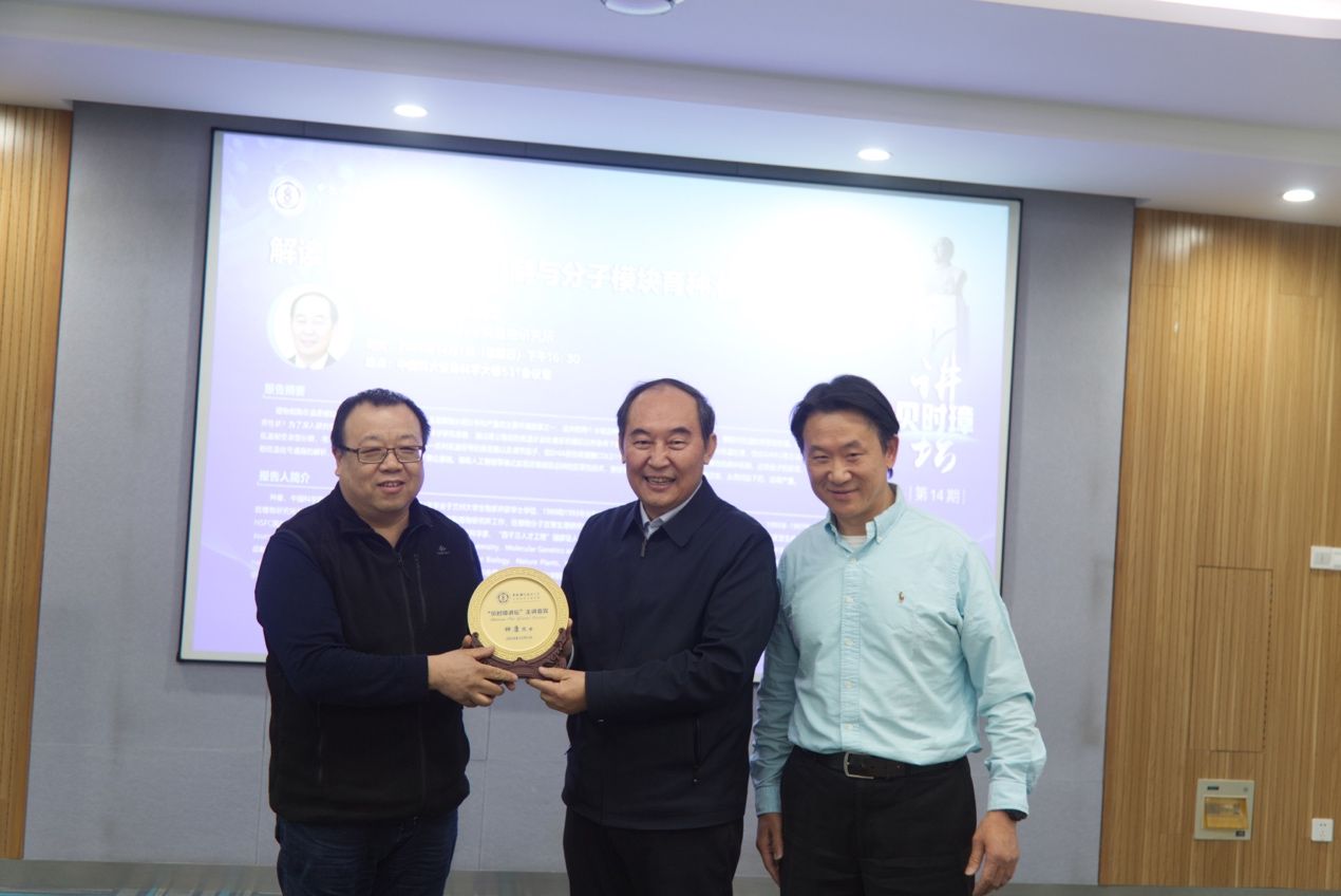 生医部副部长赵忠教授和姚雪彪教授给种康教授颁发了“贝时璋讲坛”纪念牌