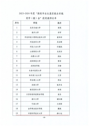 中国科大郝心远老师荣获2023-2024年度“高校毕业生基层就业卓越奖学(教)金”