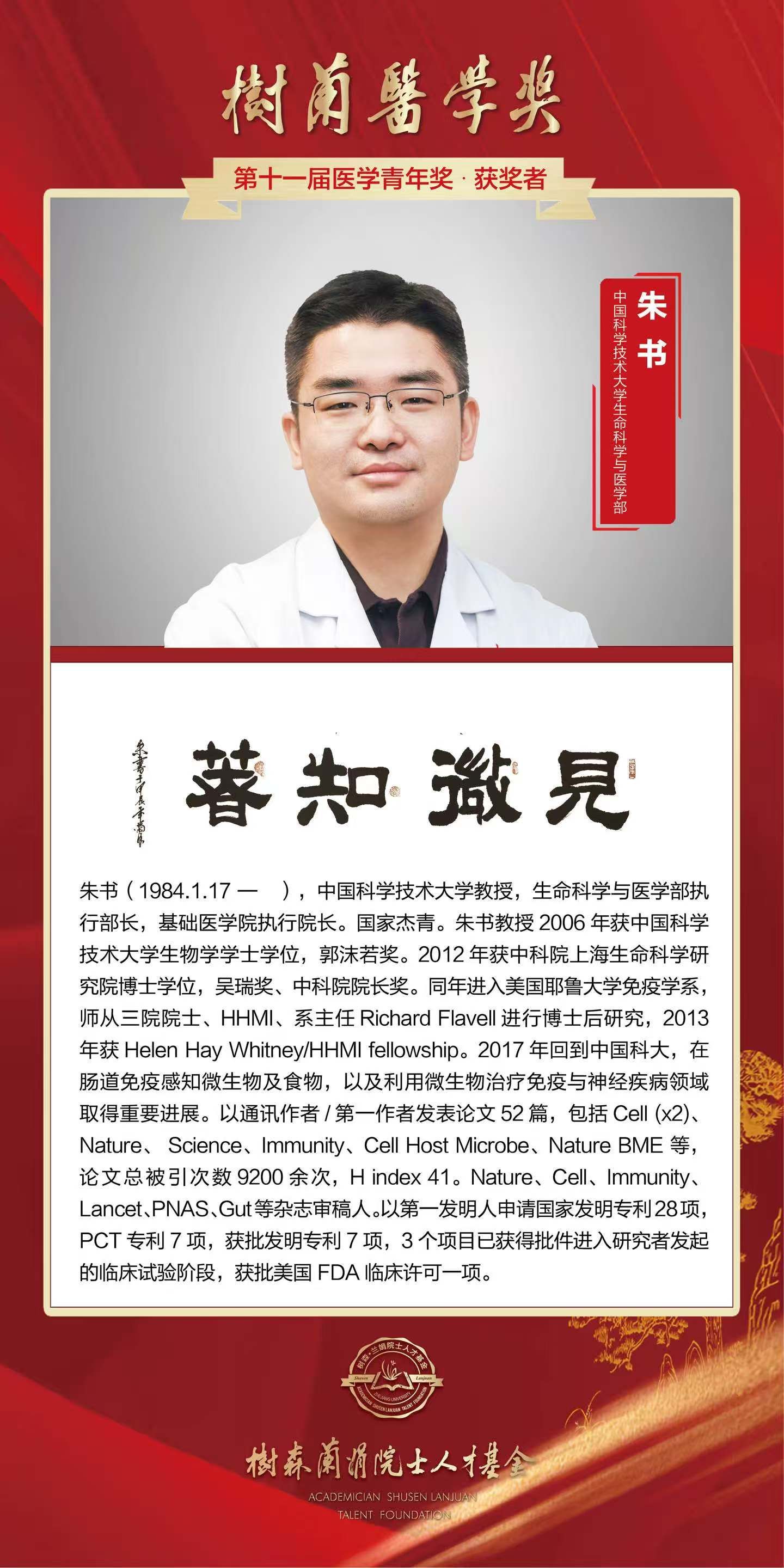 朱书的研究聚焦于饮食、微生物与免疫系统在肠道中的相互作用,深入探索其对人类健康与疾病的影响,取得了一系列重要科研突破。他创立的Ibiome Biotechnology专注于将科研成果转化为治疗免疫与神经系统疾病的创新疗法,赢得了学术界与产业界的认可。此次朱书荣获“树兰医学青年奖”,充分肯定了其在前沿科学研究与成果转化中的突出贡献,展现了其引领医学科技发展的卓越潜力。