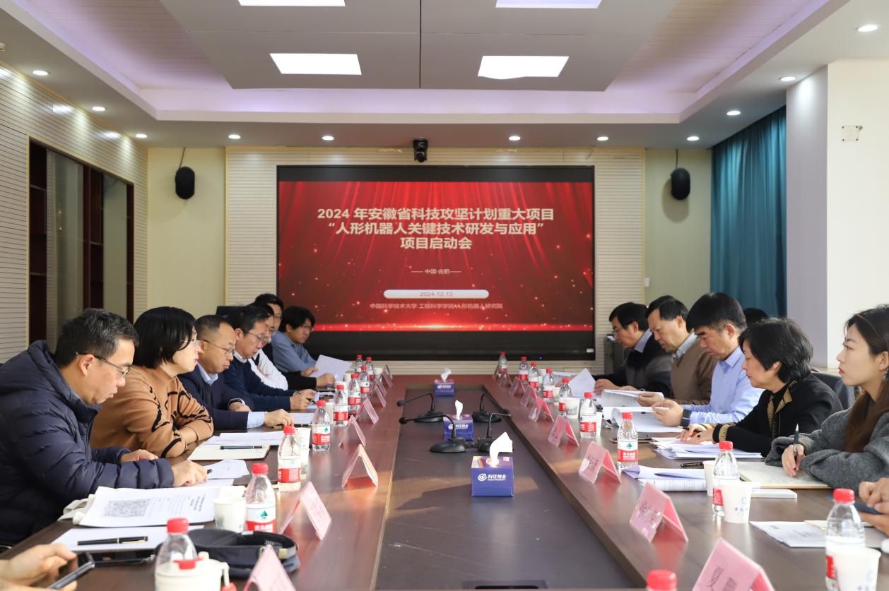 12月13日,由中国科大牵头的2024年安徽省科技创新攻坚计划重大项目“人形机器人关键技术研发及应用”项目启动会在我校工程科学学院力四楼二楼会议室召开。山东省自动化学会理事长、山东大学李贻斌教授,合肥工业大学韩江教授、中国科学院合肥物质科学研究院宋全军研究员、安徽工业大学徐向荣教授、哈尔滨工业大学陈浩耀教授等专家,安徽省科技厅前沿技术处处长张弘等项目主管部门领导,中国科大科研部副部长、高技术发展处处长刘静,项目组骨干成员出席会议。