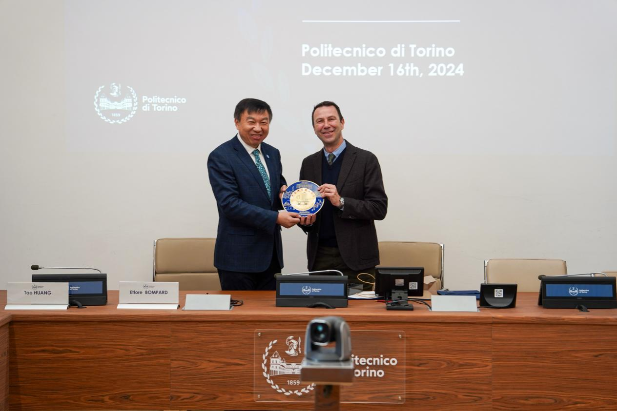12月16日,代表团访问意大利都灵理工大学,舒歌群与都灵理工大学校长Stefano Corgnati进行会谈,并签署两校合作备忘录。会谈中双方探讨了两校下一步合作方向,并就加强两校学生交流达成了共识。访问期间,代表团还与都灵理工大学应用科学与技术系教授代表开展了圆桌讨论,重点探讨了两校之间的学生交换项目计划。