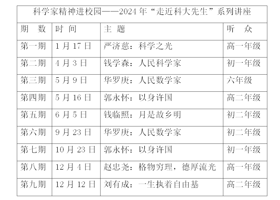 自2024年元月起,档案文博院就在科大附中开展了“走近科大先生”系列科学家主题宣讲活动,并以举办科学家精神主题展、编写科学家故事校本读物、发放“两弹一星”科学家文创产品等多种形式,开展了一系列弘扬科学家精神的活动,丰富了校园文化建设,促进了科学教育优质资源的有效融合。
