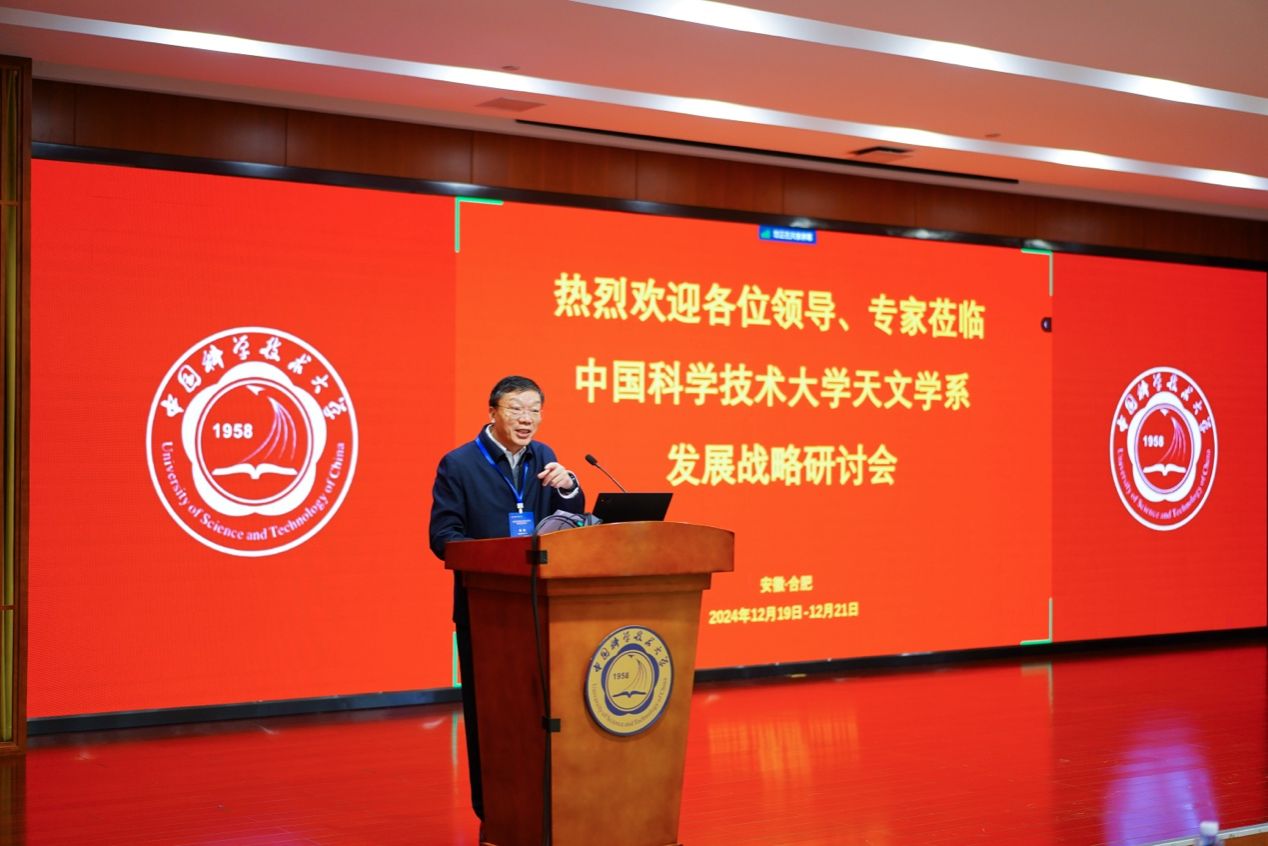12月20日,中国科学技术大学天文学系发展战略研讨会在东校区举行。本次会议旨在探讨天文学系的发展战略与未来规划,为推动天文学领域的持续进步与创新提供新思路、新方案。会议邀请了众多学术界与管理界的重要嘉宾,与会领导和专家共同为学科发展建言献策。