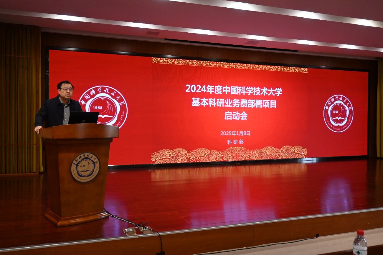 为进一步加强学校基本科研业务费项目管理,提升基本科研业务费资金使用效能,1月8日下午,中国科学技术大学2024年度基本科研业务费部署项目启动会在东区活动中心5楼报告厅召开,2024年度立项的校基础前沿团队项目负责人及骨干成员、校青年创新重点基金项目负责人,以及项目承担二级单位负责人、科研秘书等七十余人参加本次会议。校党委常委、副校长傅尧出席会议并讲话,特邀嘉宾环境科学与工程系俞汉青院士和物理学院查王妹教授作分享报告。会议由科研部部长查正军主持。
