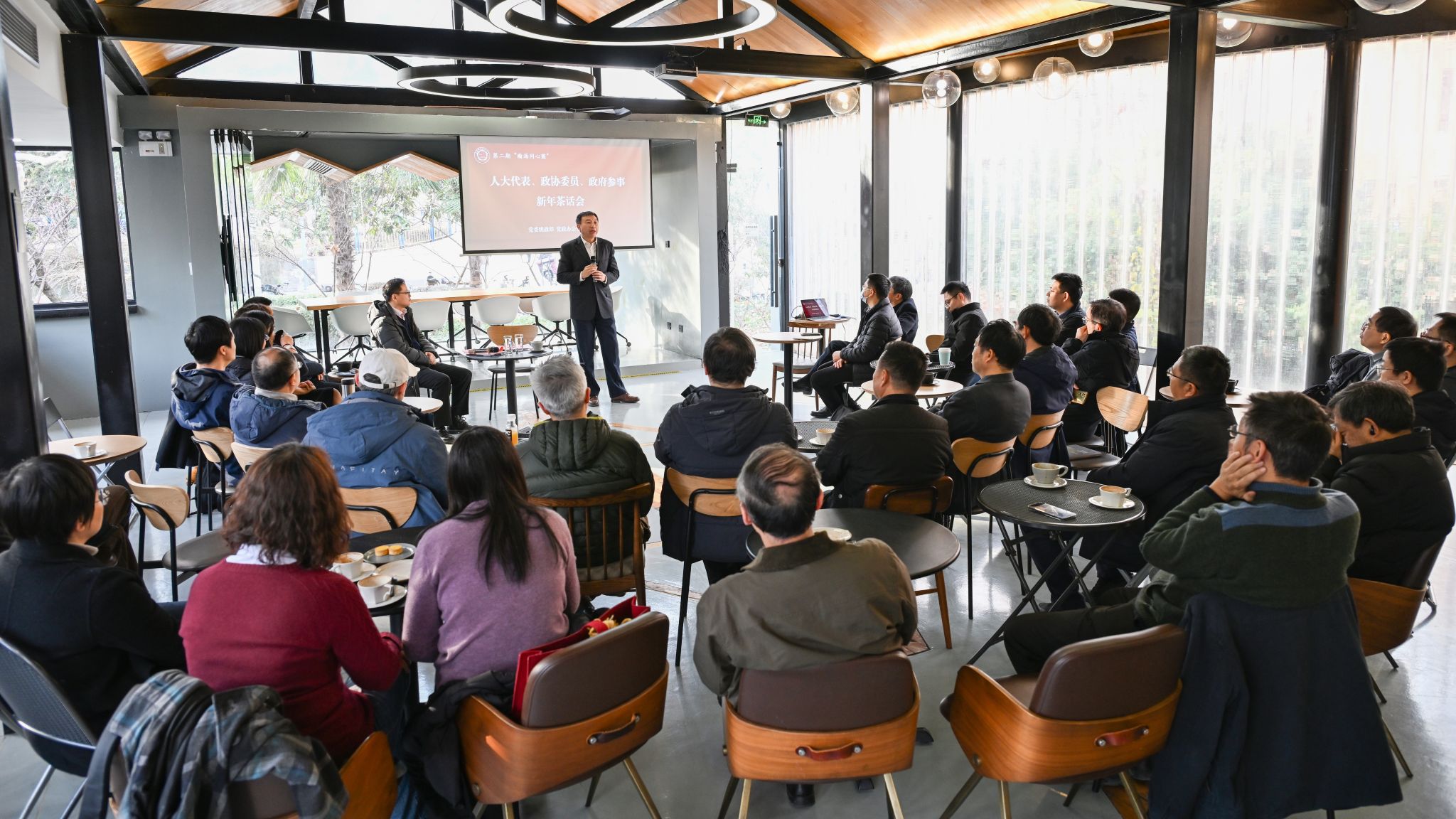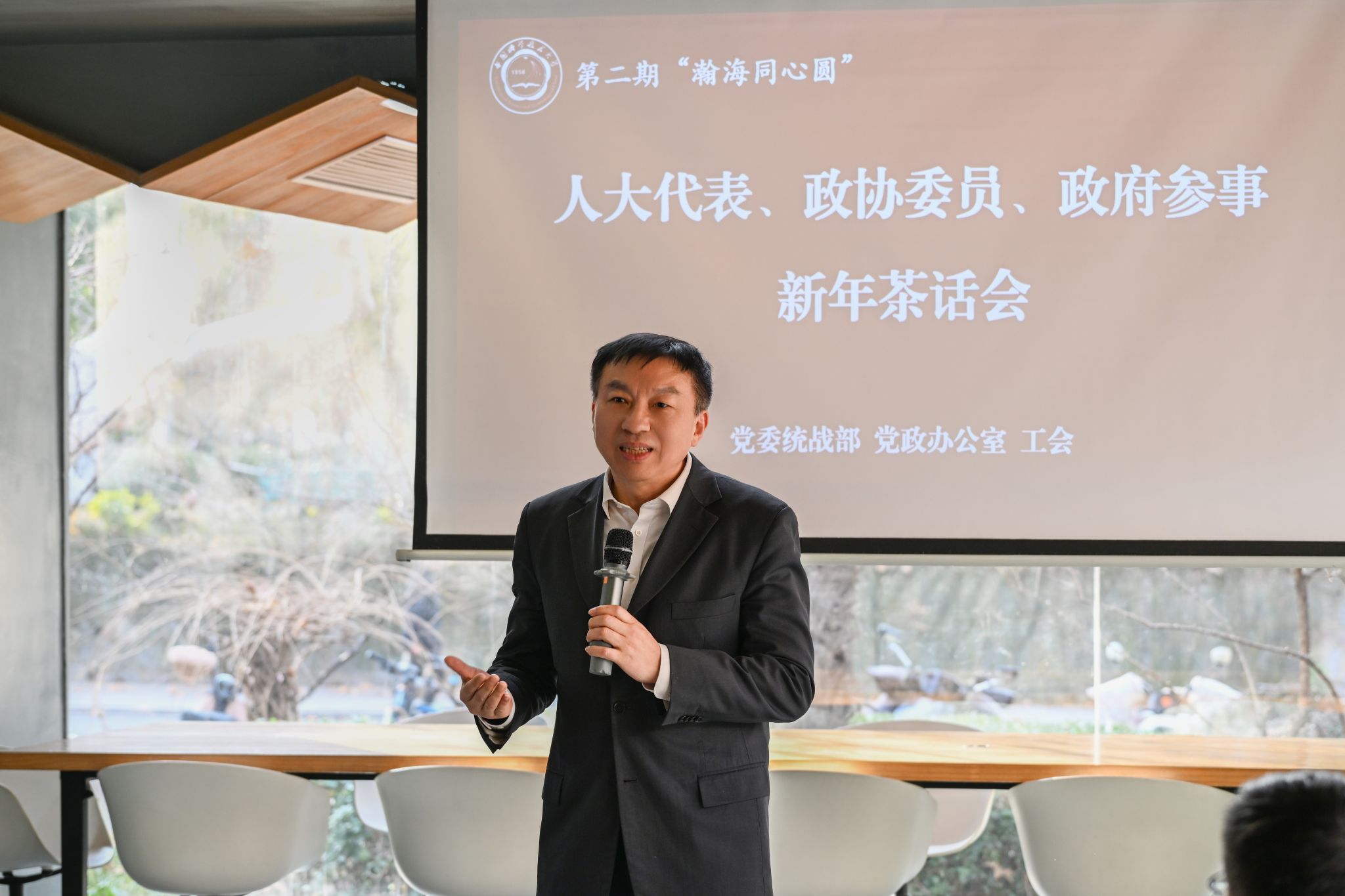 1月8日下午,第二期“瀚海同心圆”人大代表、政协委员、政府参事新年茶话会在1958咖啡厅举行,校党委书记舒歌群出席并讲话。全校30多位各级人大代表、政协委员、政府参事和民主党派、统战团体负责人参加会议,茶话会由校党委常委、党委统战部部长李峰主持。