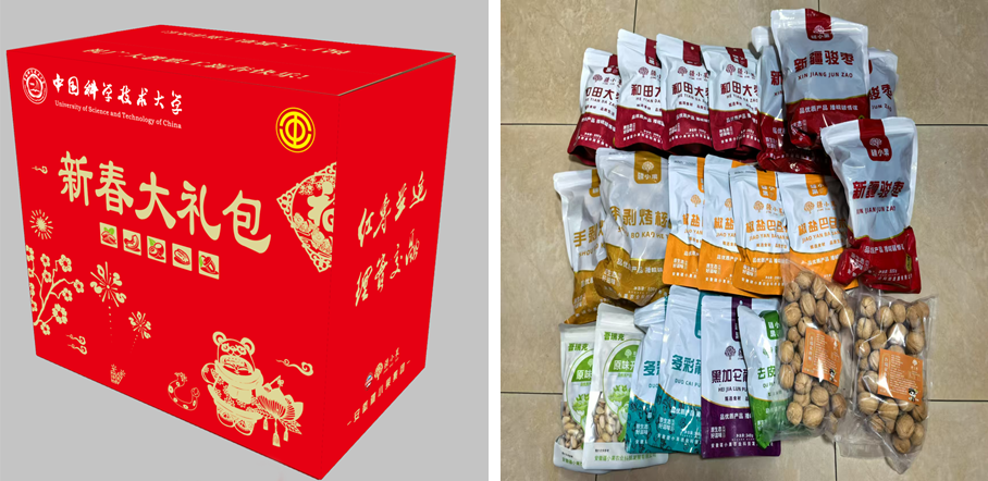 本次发放的新春大礼包为新疆帮扶产品,包括核桃、精品和田大枣、新疆骏枣、黑加仑葡萄干、巴旦木、开心果、烤核桃等。沉甸甸的暖意,美滋滋的味道,体现了学校对广大教职工的问候关怀和新春祝福。