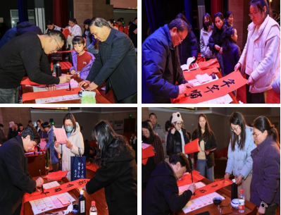 活动现场,墨香四溢,浓浓年味。书法爱好者们在纸上挥毫泼墨,书写新春祝福。“祥龙摆尾留佳绩,灵蛇昂首启新程”,一副副对仗工整、寓意美好的春联在笔墨间诞生。在校工会的精心组织下,现场挂满了提前书写好的春联和福字,引得师生们驻足欣赏,大家排队挑选领取心仪的蛇年春联。除了书写春联,现场布置的剪纸作品展示区同样吸引了大家的目光。剪纸老师以节日元素为主题,创作出吉祥如意的剪纸作品,用指尖上的传统技艺欢庆新年的到来。