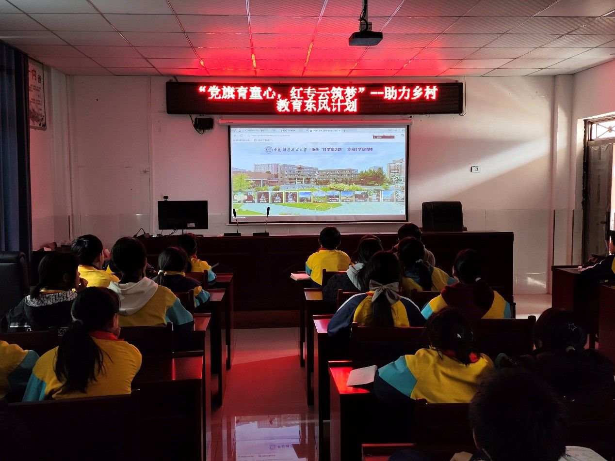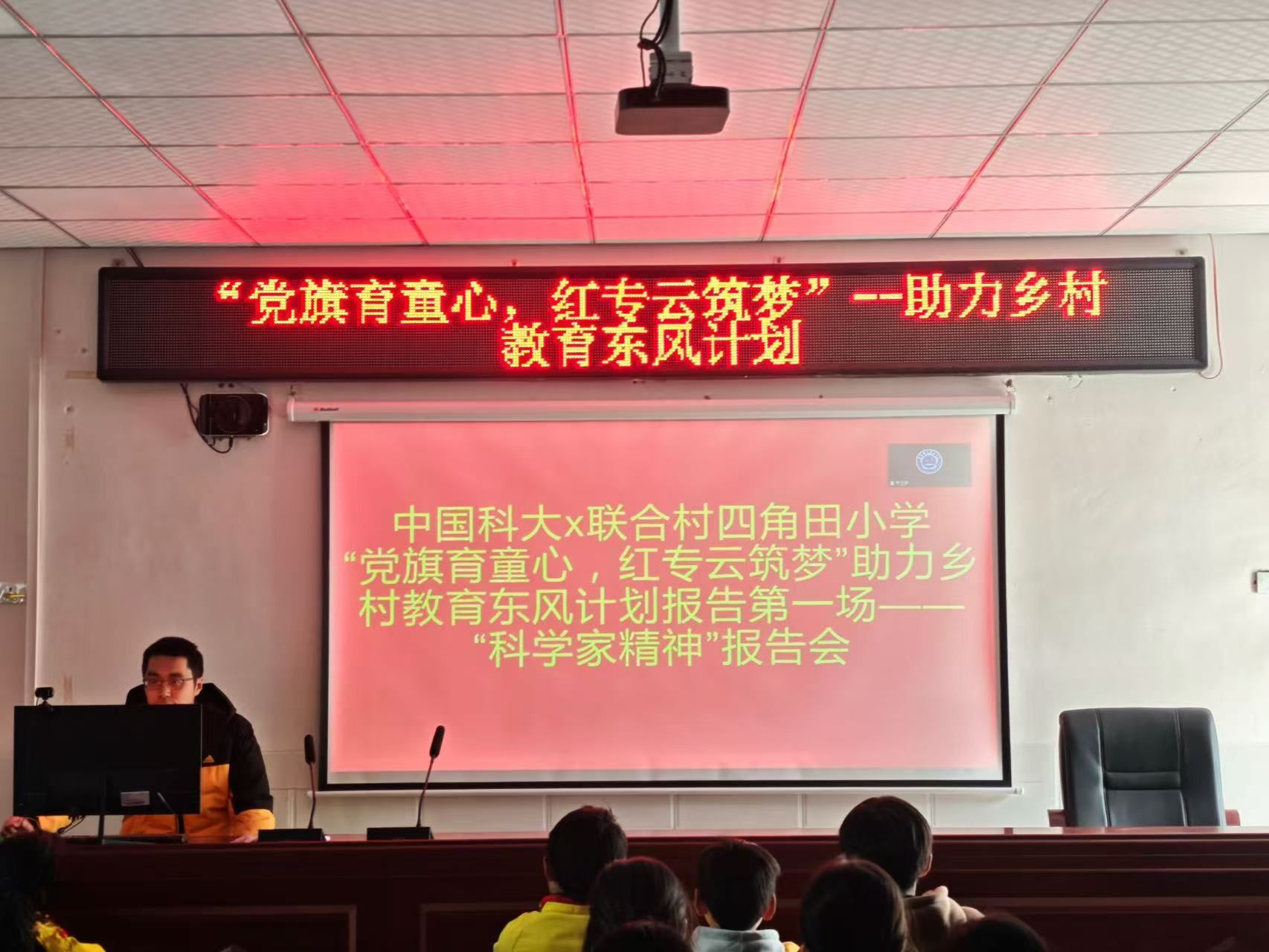 为深入推进中国科学技术大学定点帮扶贵州省六枝特区联合村教育帮扶工作,弘扬科学家精神,激发青少年科技报国志向,学工部处、人武部党支部和六枝特区联合村党支部、驻村工作队共同策划启动“‘党旗育童心 红专云筑梦’——助力乡村教育东风计划”系列活动。2025年3月20日下午,学工部处、人武部党支部青年理论宣讲团成员刘珣、孟颖为联合村四角田小学的孩子们开展了首次网络宣讲。