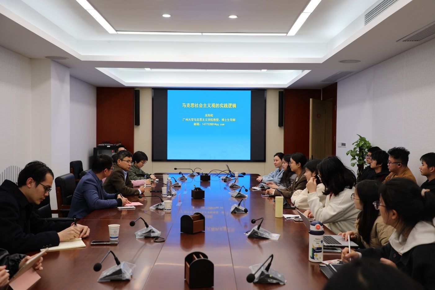 3月28日下午,马克思主义学院青年学者学术沙龙第八期讲座在310会议室举行。广州大学马克思主义学院副院长吴阳松教授作专题学术报告《马克思社会主义观的实践逻辑》。讲座由马克思主义学院党总支书记褚建勋教授主持,青年教师和研究生代表参加了本次活动。