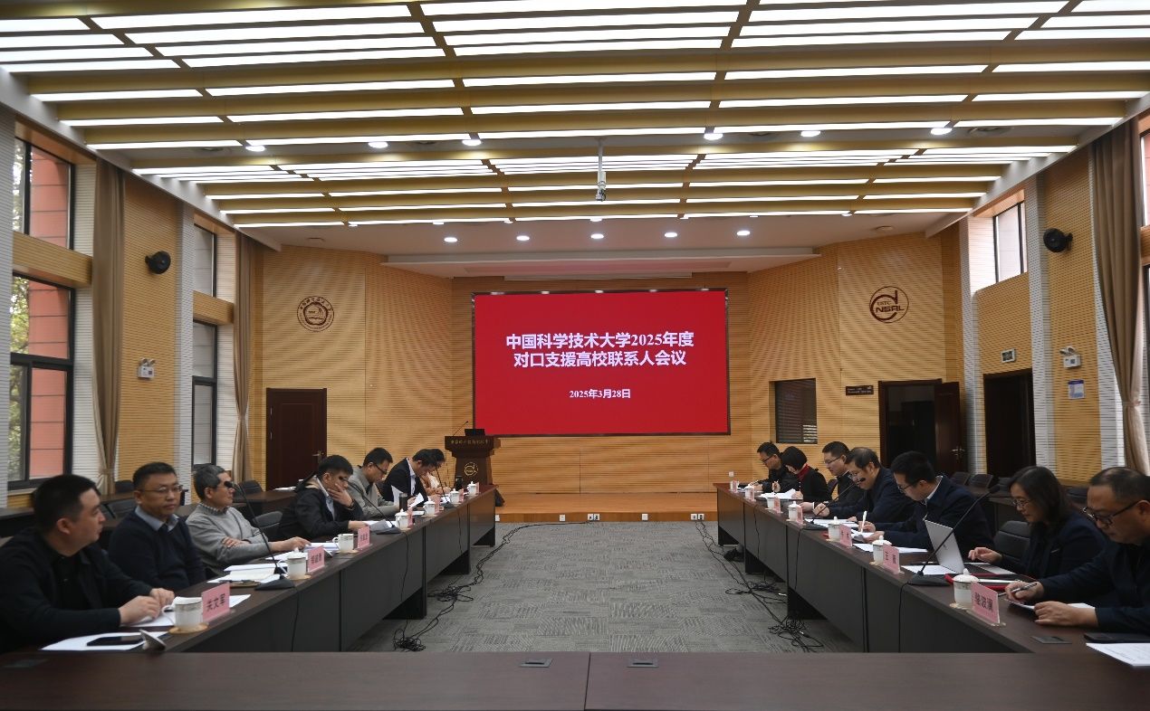 为进一步推进学校对口支援工作,深化对口支援高校合作网络建设,3月28日,中国科大召开2025年度对口支援高校联系人会议,中国科大党委副书记邓建松、六盘水师范学院副校长牛伟,西南科技大学、新疆师范大学、六盘水师范学院、江西理工大学、闽江学院等5所高校负责对口支援合作工作的单位负责人、联系人参加会议。会议由定点帮扶工作领导小组办公室主任何昊华主持。