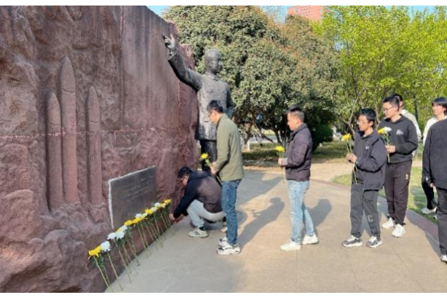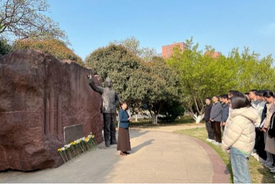 师生们首先面向塑像静默哀思,随后依次敬献鲜花,表达缅怀与敬仰之情。