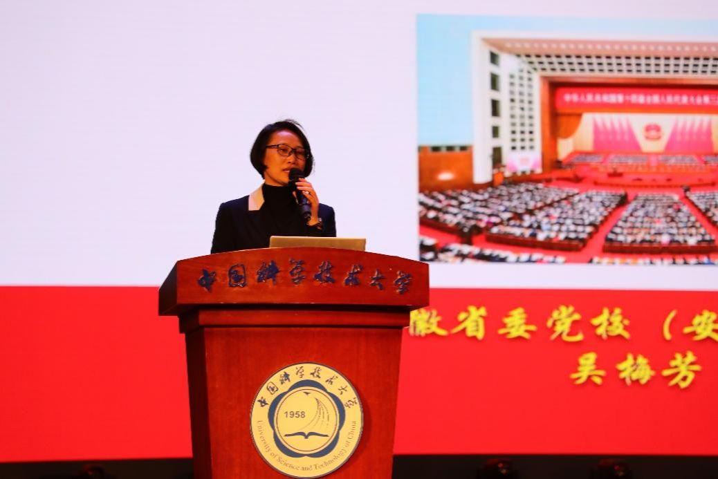 吴梅芳表示,学习贯彻全国两会精神,是当前一项十分重要的政治任务,从大会的基本情况、大会的主要精神及安徽代表团参会的情况三个方面作报告。