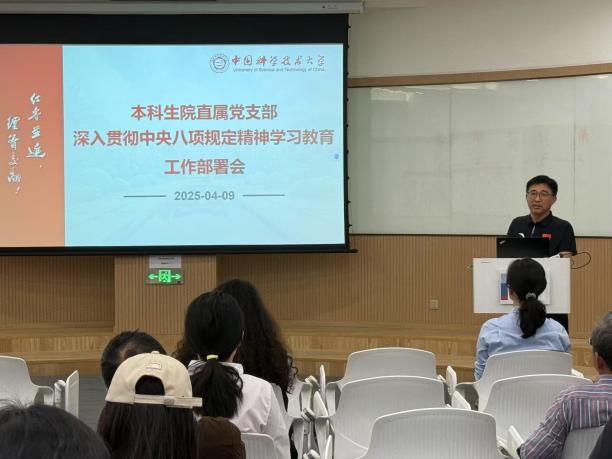 王永传达了《中共中央办公厅关于在全党开展深入贯彻中央八项规定精神学习教育的通知》精神和《中共中国科学技术大学委员会关于开展深入贯彻中央八项规定精神学习教育的实施方案》文件精神,并对本科生院开展深入贯彻中央八项规定精神学习教育作进一步动员。他强调,开展深入贯彻中央八项规定精神学习教育是今年党建工作的重点任务,希望全院教师严格对标要求、自省自律,将学习教育与师德师风建设相结合、与个人实际工作相结合,全面查摆问题、深刻剖析原因、全力做好整改。