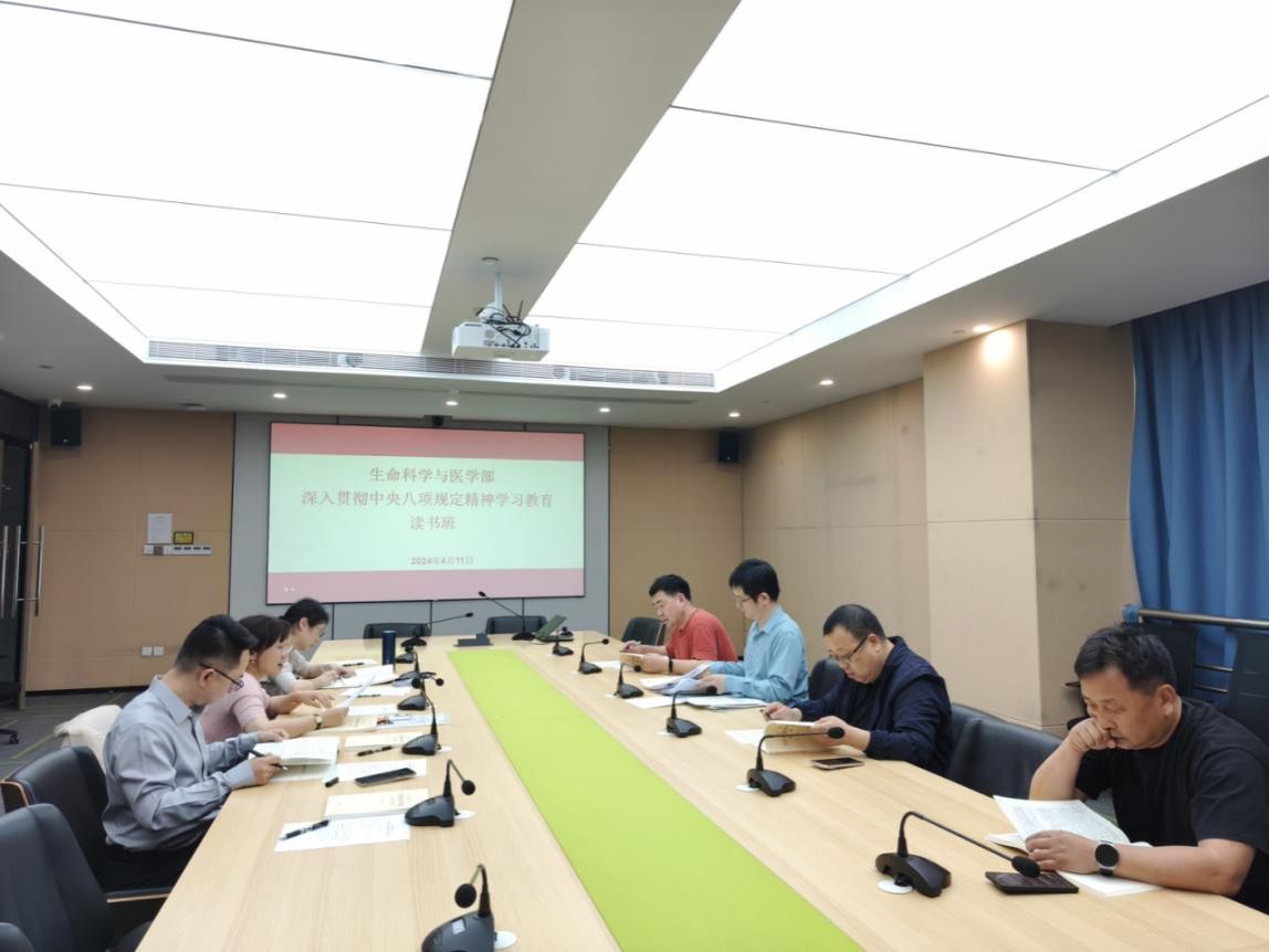 4月11日下午,生命科学与医学部在西区生命学院139会议室举办深入贯彻中央八项规定精神学习教育读书班。此次读书班由生医部党委常务副书记臧建业主持,生医部党委理论学习中心组成员参加学习。