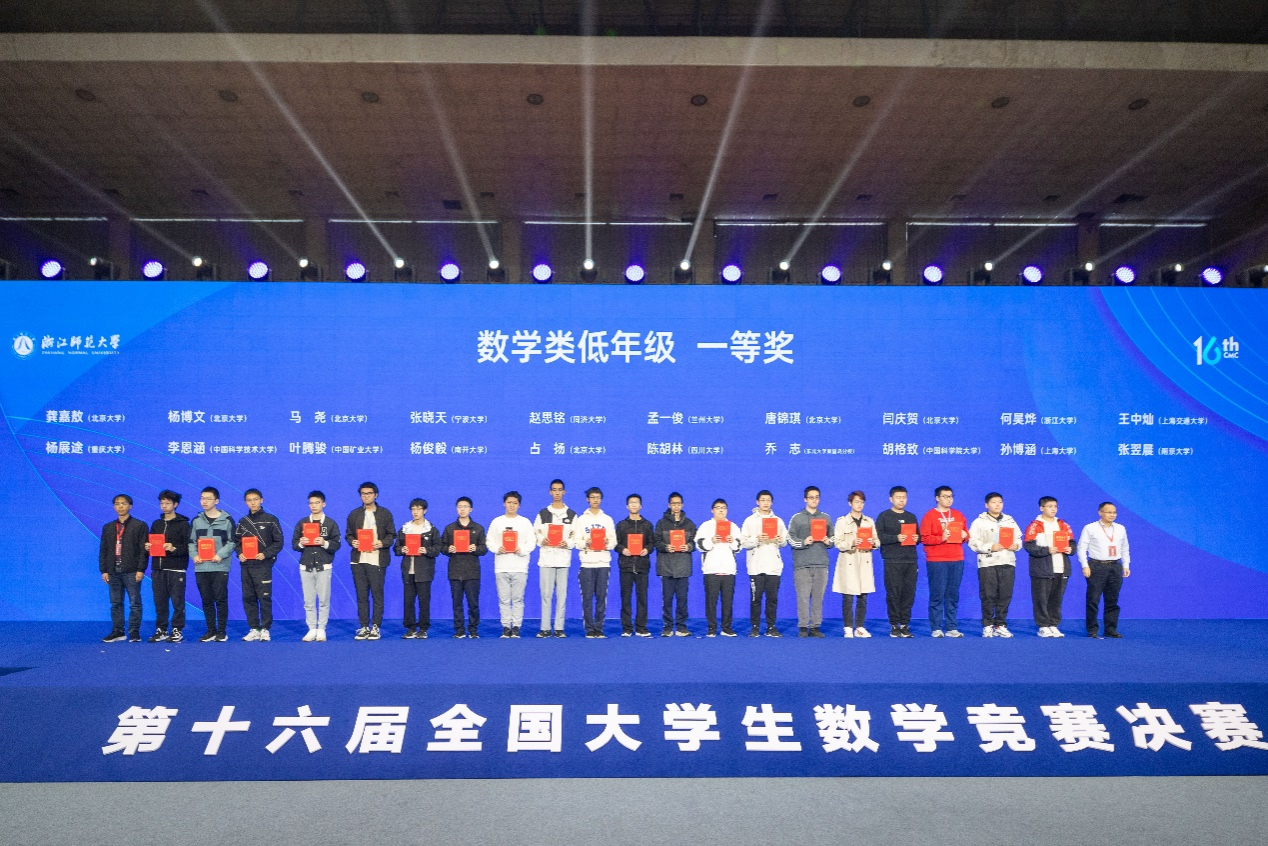 我校在本届竞赛中荣获佳绩,共16名学子进入决赛,最终荣获一等奖9项、二等奖5项、三等奖2项。其中,数学专业(高年级组)前15名人数位列全国高校第一。数学科学学院侯国豪、谭立,少年班学院吕长乐、孙之棋、李恩涵、涂远鹏获专业组一等奖;物理学院杨子华,计算机学院朱东胜,少年班学院严从哲获得非专业组一等奖。