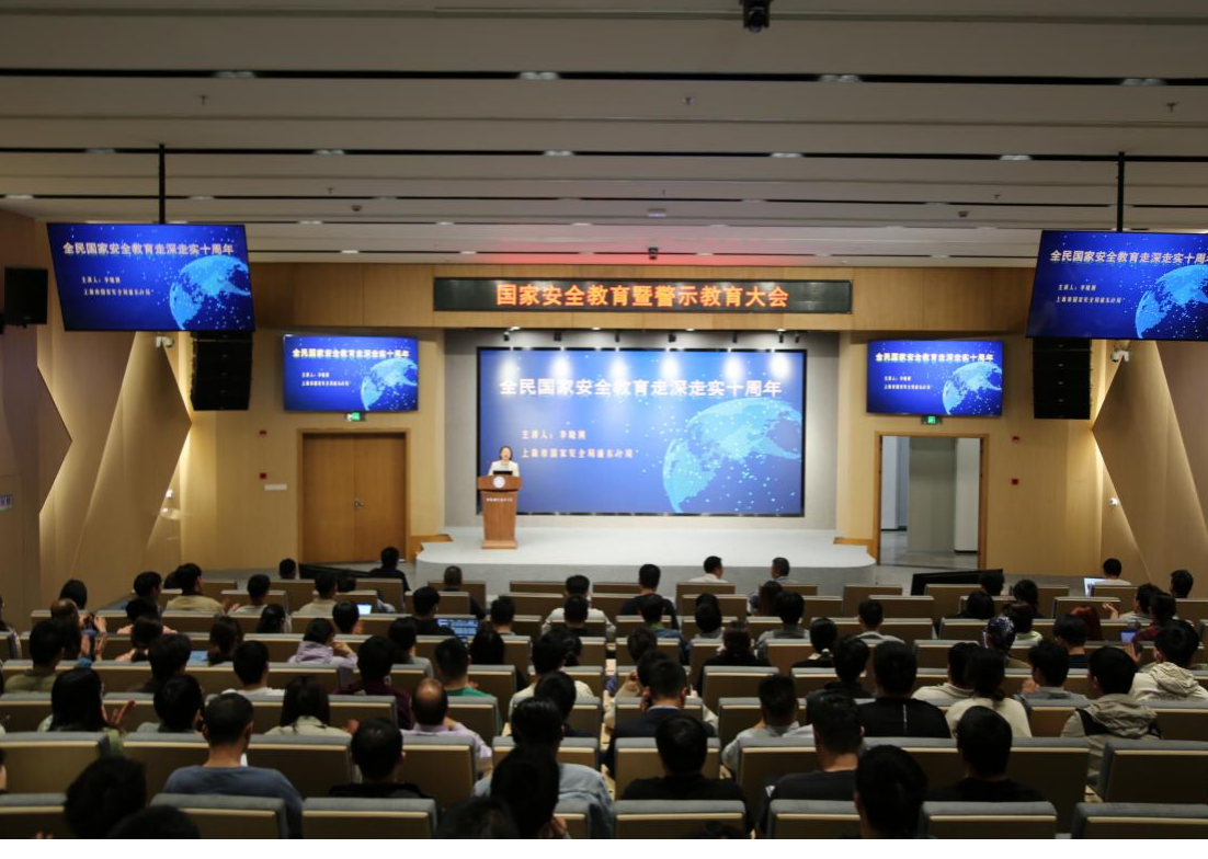 在第十个全民国家安全教育日到来之际,为了深入贯彻落实中央关于全面加强国家安全教育的有关要求,进一步强化在院师生员工国家安全意识,筑牢全民国家安全防线,4月15日下午,上海研究院在新区1号楼报告厅召开了国家安全教育暨警示教育大会。本次大会邀请了上海市国家安全局浦东分局党委委员、李晓刚副局长作《全民国家安全教育走深走实十周年》专题报告,学院师生共200余人参加。会议由党委书记印娟主持。