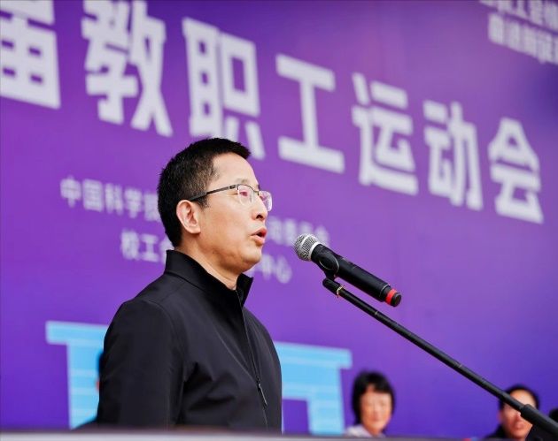 周丛照副校长致开幕辞,他首先代表学校向积极参赛的运动员、公正执裁的裁判员、辛勤付出的工作人员,以及长期以来关心、支持学校体育事业发展的全体教职工表达了诚挚问候。他对过去一年校工会构建的“习惯养成、赛事提升、风采展示”的教职工体育运动工作思路给予了肯定。他表示,学校始终高度重视教职工的身心健康,切实加强对教职工体育运动的资源保障,为构建家庭幸福与事业奋进奠定坚实基础,希望广大教职工在坚守立德树人、攻关创新一线的同时,积极参与各类体育活动,强健体魄、锤炼意志、拼搏进取、追求卓越。最后,他预祝广大教职工在赛场上尽情挥洒汗水,绽放科大人的拼搏风采,将奋勇争先的体育精神转化为干事创业的强劲动能,在建设中国特色、科大风格的世界一流大学征程中再创佳绩。