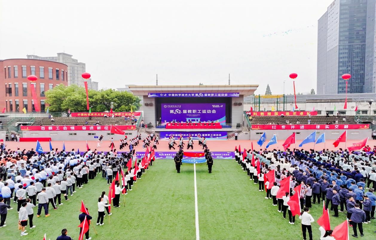 四月的校园芳菲竞秀,生机勃发。4月19日上午,中国科学技术大学第52届教职工运动会在东区体育场盛大开幕。校党委常委、副校长、工会主席周丛照,党委副书记邓建松,党委常委、党委统战部部长李峰,相关职能部门和各学院主要负责人,全体运动员和裁判员参加开幕式。开幕式由校工会常务副主席杨晓果主持。