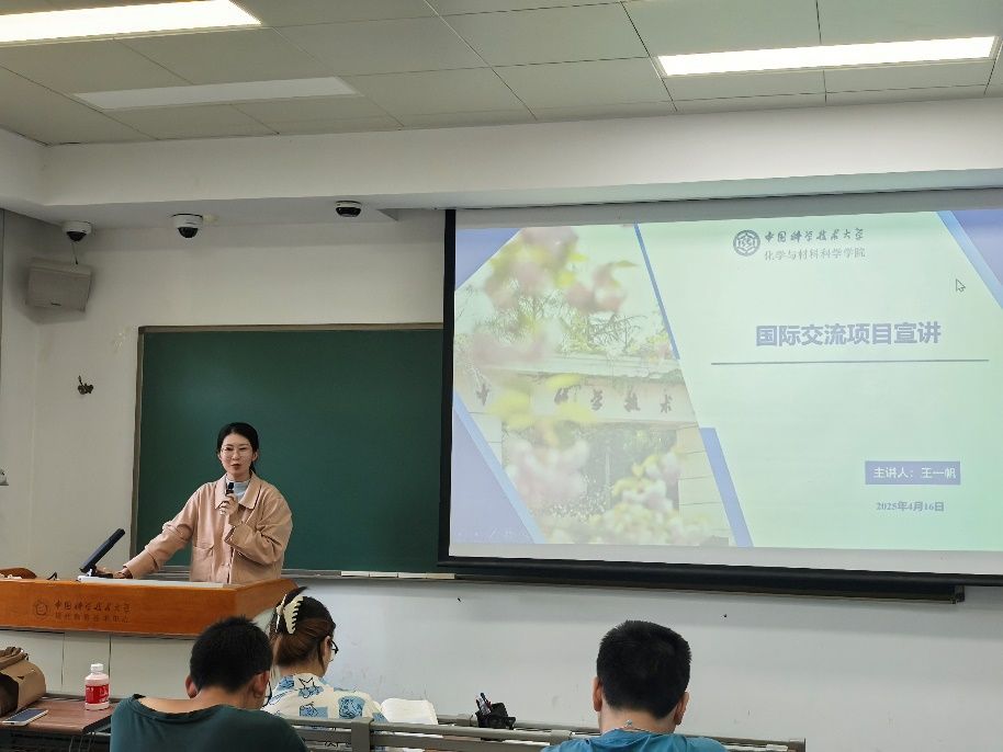 为助力学生拓宽国际视野,提早规划暑研计划,化学与材料科学学院于4月16日在东区二教2302教室举办“飞跃引领,化育英才“——本科生暑研经验分享会,学院23、24级本科生近40人参加了本次分享会。分享会上,学院外事秘书王一帆老师介绍了暑研项目的参与方式,同时邀请优秀学生代表胡国梁同学和李俊霖同学分享暑研经验与成果,学院党委副书记周小东老师主持本次分享会。
