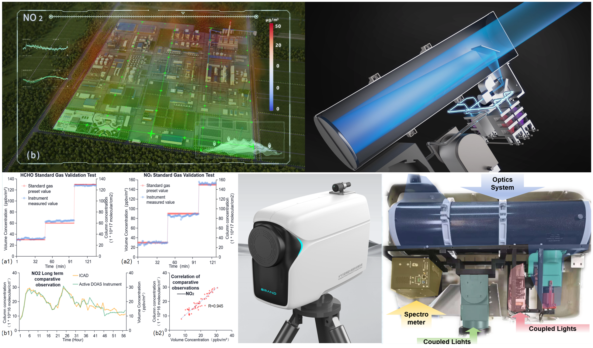 大气成分超光谱无人机层析扫描成像遥感装备融合了超光谱遥感技术、医学CT成像技术以及靶向精准跟瞄技术等一系列关键技术,实现了对目标区域多种污染/温室气体白天和夜间的高时空分辨率立体分布扫描,以及对重点污染/温室气体排放源的精准定位和排放量化,将超标排放责任明确到米级尺度的具体设施,解决了以往因排放责任不明而只能采取“一刀切”的困局,实现了以最小的经济代价持续推进“减污降碳”政策的落地实施。该技术已获中国发明专利和美国发明专利授权(ZL202311267942.1,US12235213B1),成为国内外首个实现该技术方案并完成国际专利布局的创新成果。其核心突破性获日内瓦国际发明展金奖,也在一定程度上反映了我国在大气监测前沿技术领域逐步实现从跟跑到领跑的能力提升。