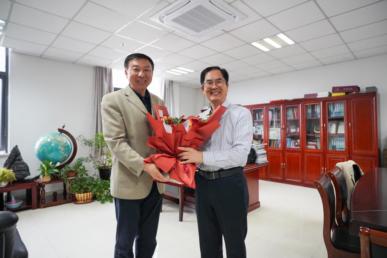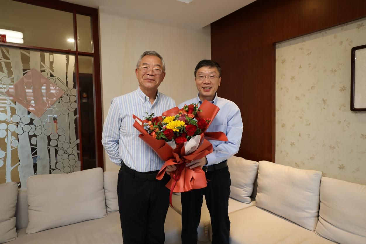 在全国模范教师田志刚的家里,常进对他多年来兢兢业业耕耘在教育、科研一线,无私奉献的敬业精神表示赞许和感谢,希望他继续关注和支持学校的各项改革与发展,充分利用自身专长与影响力,为学校高质量发展贡献智慧,为科技强国建设贡献力量。