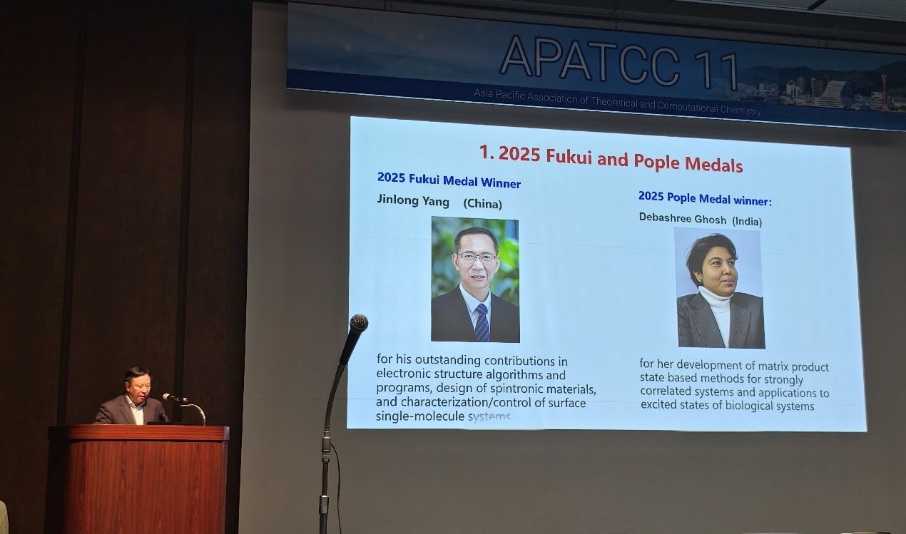 杨金龙院士荣获2025年度亚太地区理论与计算化学家协会Fukui Medal