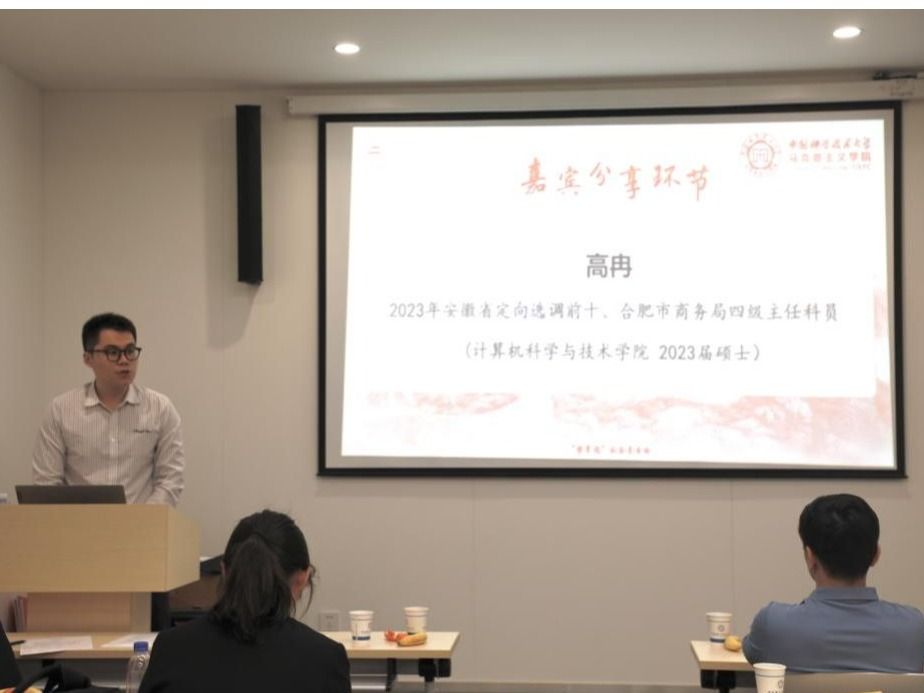 为引导广大研究生坚定理想信念、服务国家发展大局,4月23日晚,马克思主义学院举办“前辈说”2025年第三期公务员专场活动。本次活动特邀研究生院科学岛分院2023届博士韩健和计算机科学与技术学院2023届硕士高冉校友作为嘉宾交流选调生和公务员的备考经验。马克思主义学院党总支书记褚建勋教授及院内外师生共40多人参加了本次活动。会议由马克思主义学院2023级研究生钱洁琦主持。
