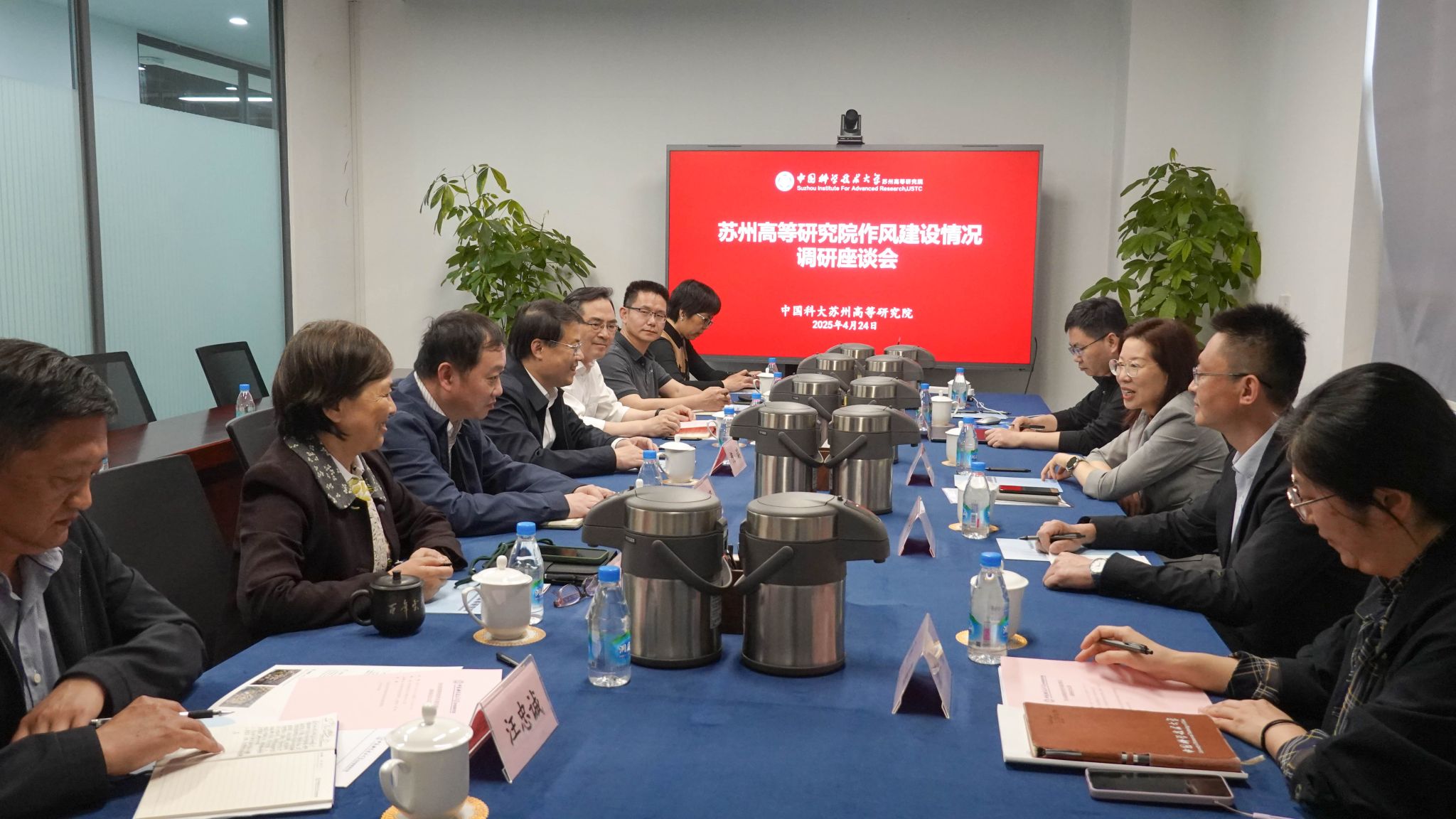 4月24日,校党委副书记、纪委书记、国家监委驻中国科大监察专员刘浏带队到苏州高等研究院调研督导,听取苏州高等研究院工作汇报,实地调研苏州高等研究院,苏州高等研究院领导班子成员及相关负责人员参加调研座谈会。