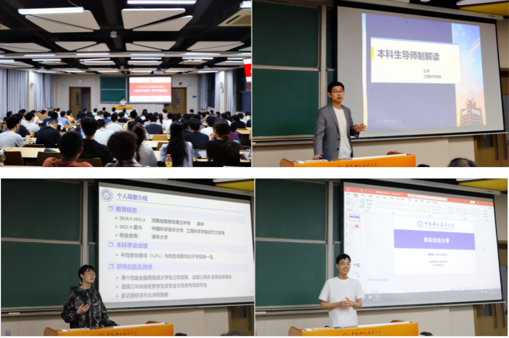 学院负责“本科生导师制”工作的近代力学系教学主任公泽教授为大家详细介绍了本科生进实验室工作。公泽详细解读了导师职责与学生职责,结合优秀案例阐述了“本科生导师制”的实施计划与重要意义。他强调,本科生进实验室经历可成为衔接理论学习与科研实践的关键桥梁,学生可根据个人兴趣与导师研究方向进行双向选择,明确未来发展方向。他勉励同学们积极与导师进行面对面沟通,主动寻求学业、科研等方面的帮助与指导,学院将提供各方面保障和政策支撑,推动本科生进实验室全覆盖,发挥科研平台和优秀师资对本科生培养的支撑作用,通过“老带新”提升实践能力,从而真正实现“早进课题、早进团队、早进实验室”的培养目标。