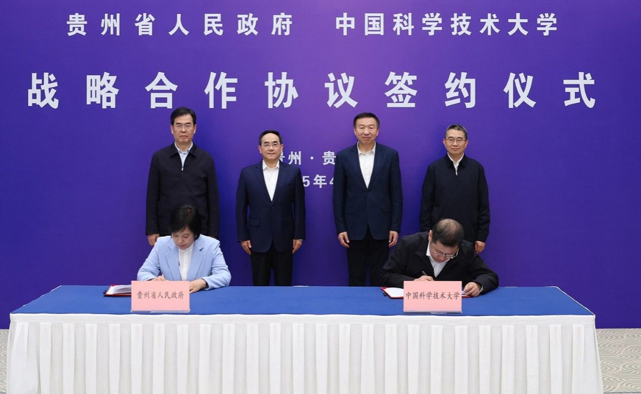 4月27日,贵州省委书记、省人大常委会主任徐麟,贵州省委副书记、省长李炳军在贵阳会见舒歌群一行,共同出席《贵州省人民政府 中国科学技术大学战略合作协议》签约仪式。贵州省委常委、统战部部长郭强,副省长张敬平,校党委常委、副校长邓建松,党委常委、宣传部部长王伟参加。