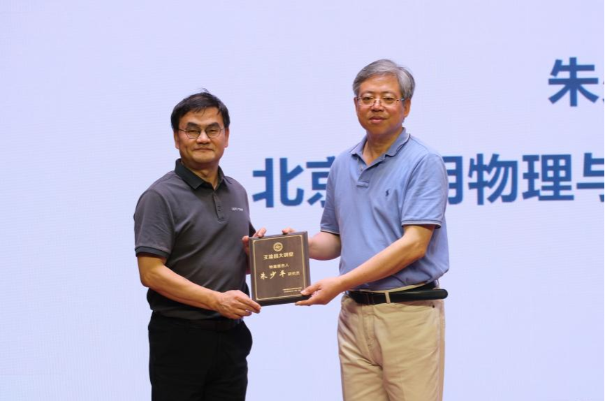 主题报告结束后,冷用斌向朱少平赠送了“王淦昌大讲堂”特邀报告纪念牌。
