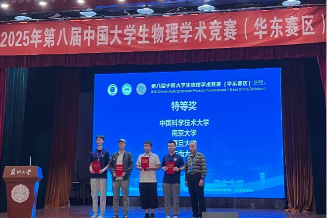 中国科大代表队在第八届中国大学生物理学术竞赛华东区赛中荣获特等奖
