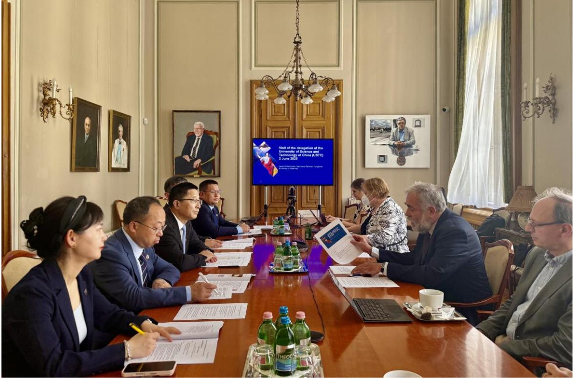 在匈牙利,代表团与罗兰大学理学院院长Imre Kacskovics教授及该校生物中心、化学中心主任举行专题会议。双方聚焦数学、物理、化学与生命科学领域,在现有科研人员交流及学科领域合作的良好基础上,通过学者互访、联合申请基金等方式深化合作。在匈牙利科学院访问期间,匈牙利科学院秘书长László Péter Kollár教授,及匈牙利科学院院士András Némethi教授,物理学家?dám Gali教授等与代表团就基础科学研究,联合申报中匈政府间科研合作项目开展讨论。