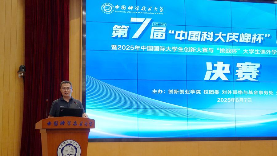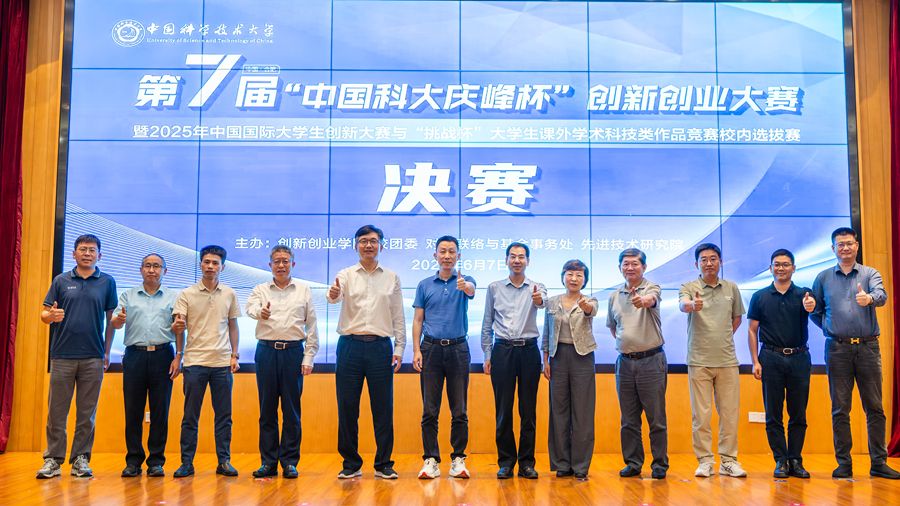 6月7日,第七届“中国科大庆峰杯”创新创业大赛决赛在东区物质科研楼三楼报告厅举行。来自各领域的专家评委、双创导师及创新创业学院、校团委等相关部门负责人,入围决赛的38支参赛项目团队及观赛师生齐聚现场。