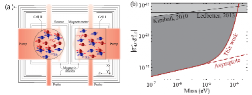 图1: (a)自旋量子测量传感器与自旋源;(b)新玻色子的实验界限。