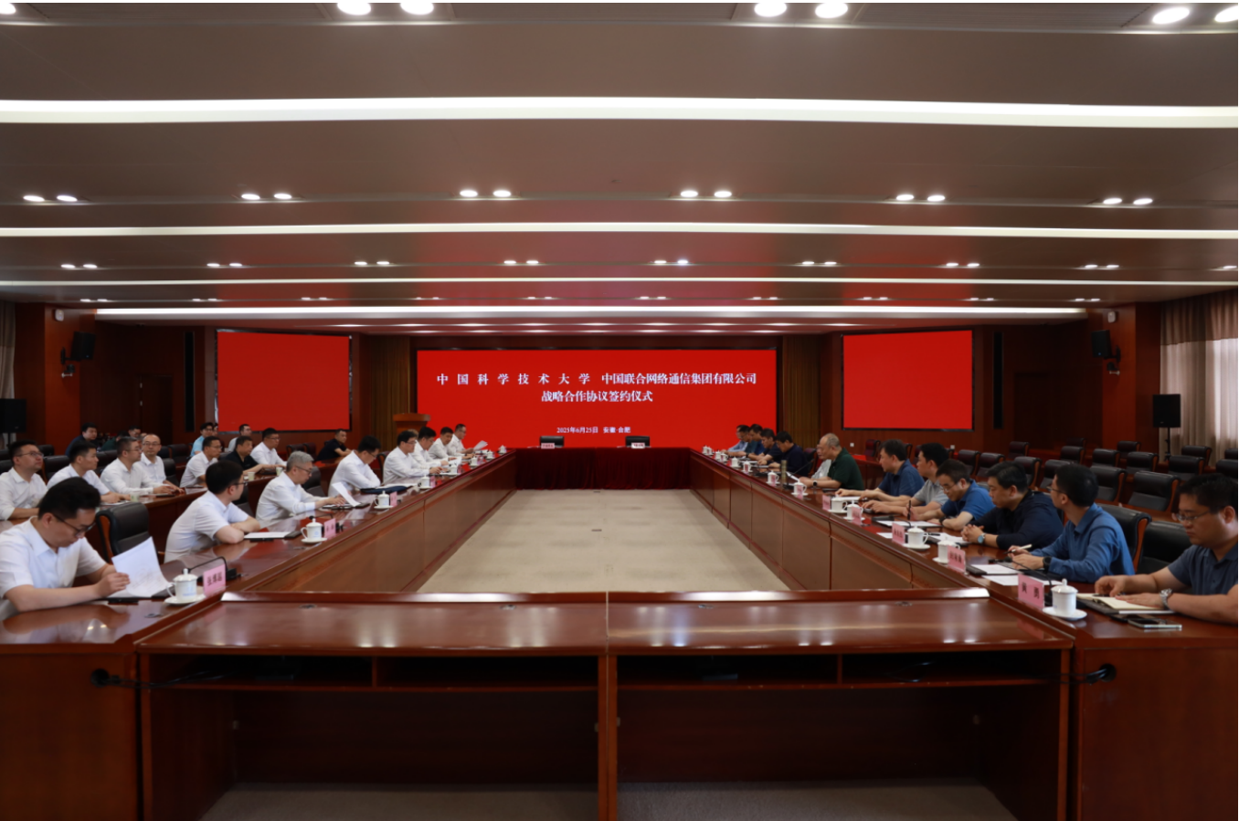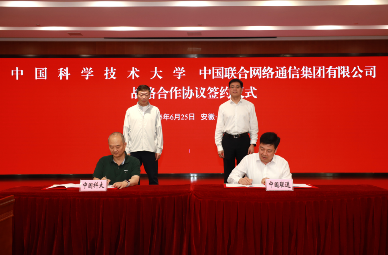 6月25日,中国科学技术大学与中国联合网络通信有限公司战略合作协议签约仪式在东区师生活动中心五楼国际会议厅举行。中国科大校长、党委副书记常进,中国联通董事长、党组书记陈忠岳,中国联通副总经理、党组成员郝立谦出席签约仪式,校党委常委、副校长吴枫主持签约仪式。学校及中国联通相关部门负责同志参加仪式。