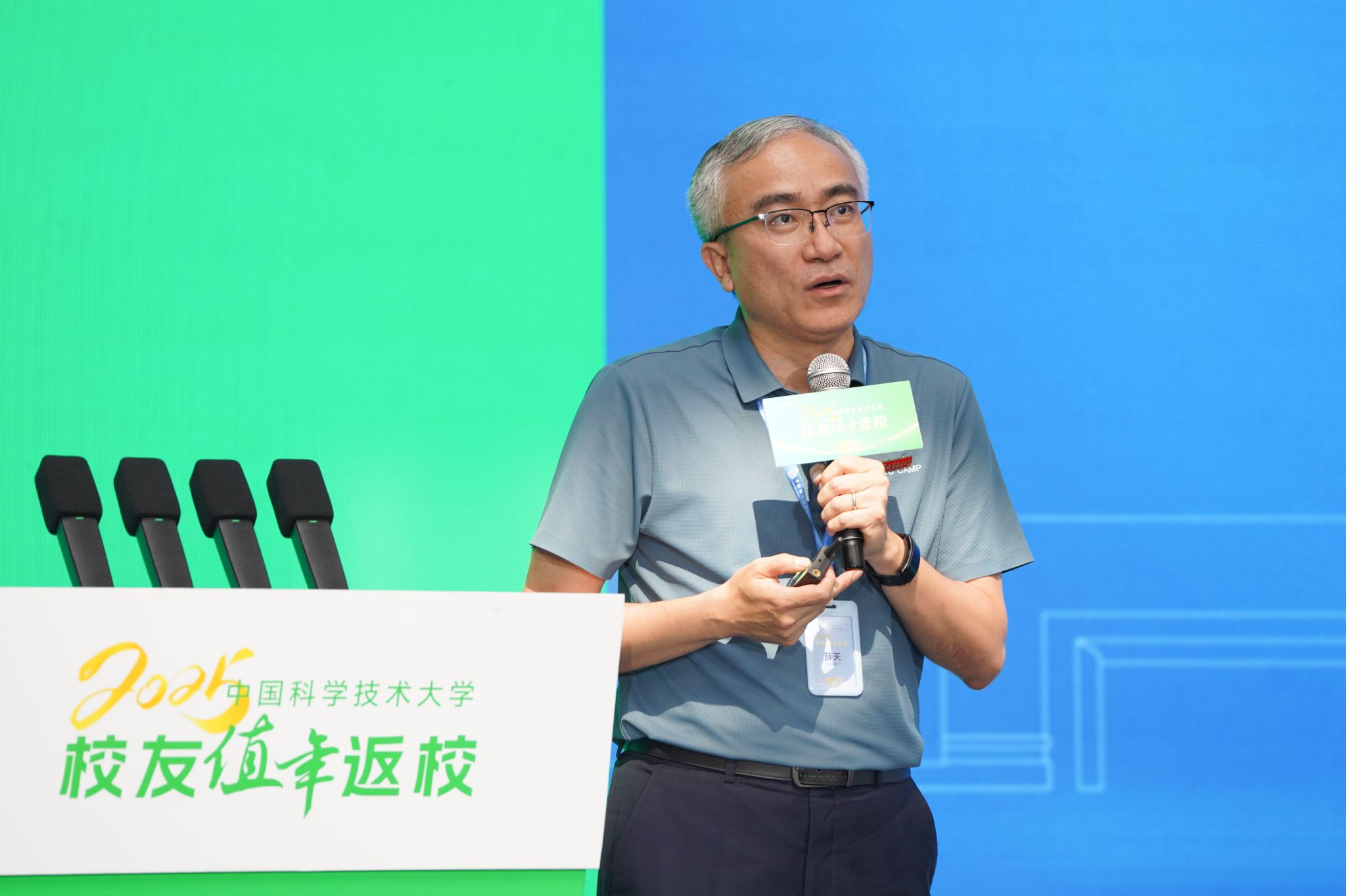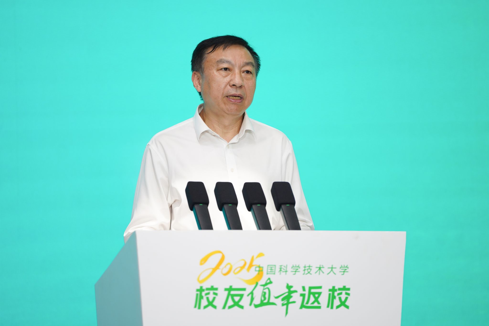 舒歌群代表学校向专程返回母校的各位校友和亲友们表示诚挚的欢迎,向一直以来所有关心和支持学校发展的海内外校友致以亲切的问候。他表示,广大校友是科大发展历程中不可或缺的亲历者、贡献者和见证者。大家一直以来的关心与支持,是学校持续创新发展,建设世界一流大学的重要动力。