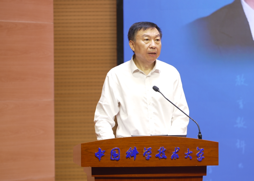 舒歌群在发言中深情回顾了李政道先生与科大的历史渊源。他指出,李政道先生不仅是少年班创立的重要推动者,还主持了CUSPEA(中美物理研究生计划)项目,他关心国家同步辐射实验室和同步辐射光源的发展,并与严济慈、赵忠尧、钱临照等科大师长结下深厚情谊。中国科大将继续秉承李政道先生“育人为本”的理念,在新时代践行教育初心。