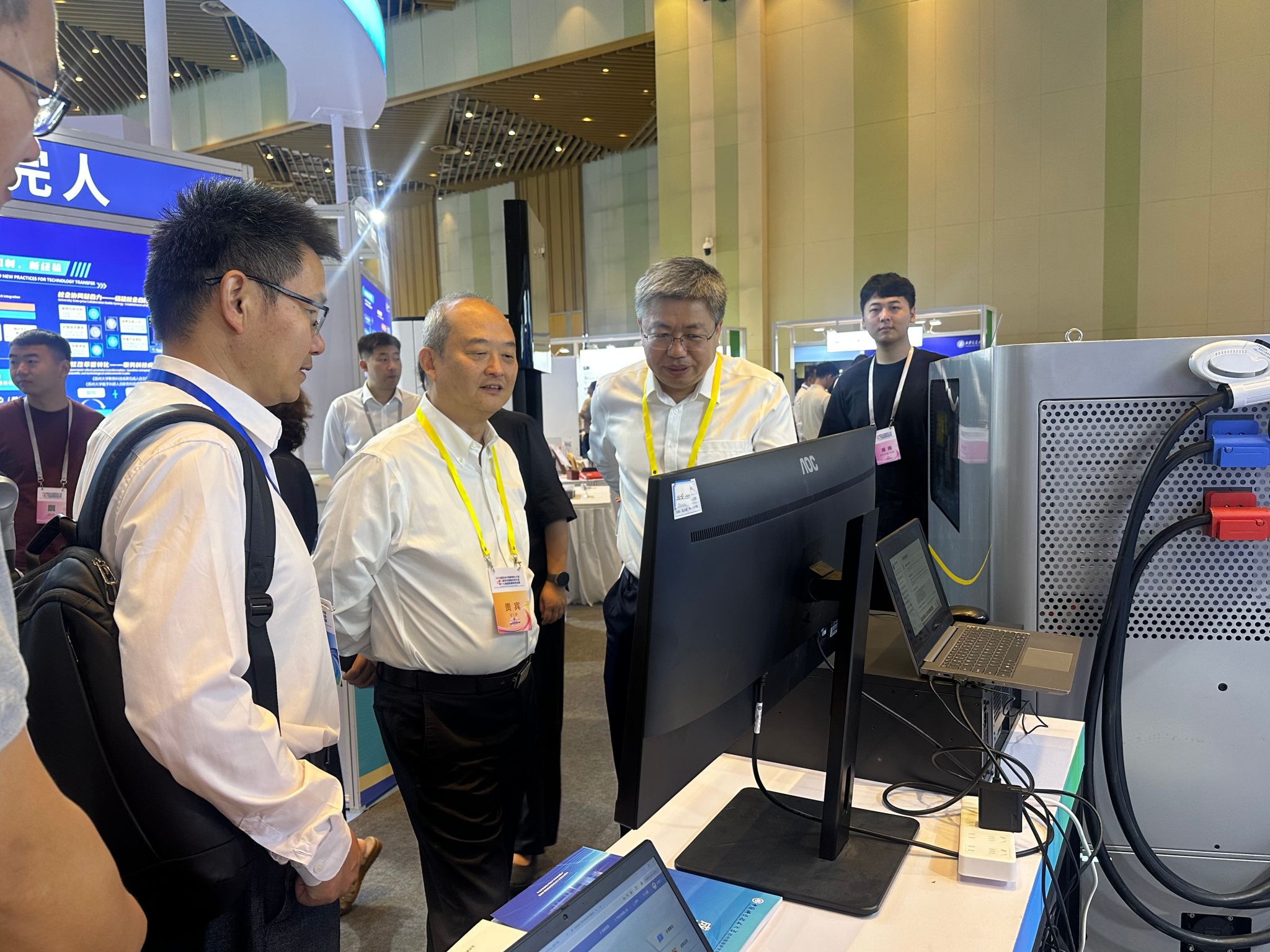 开幕式前,在苏州高等研究院执行院长闫立峰陪同下,吴枫来到展位参观指导。展位集中展示了苏州高等研究院在电子信息、人工智能等领域的最新科研成果及其产业化前景。吴枫详细询问了部分项目的技术特点、应用场景及转化进展,他鼓励科研团队继续深化研究,加速推动科技成果从实验室走向市场,更好发挥苏州高等研究院作为区域创新策源与产业赋能平台的作用。