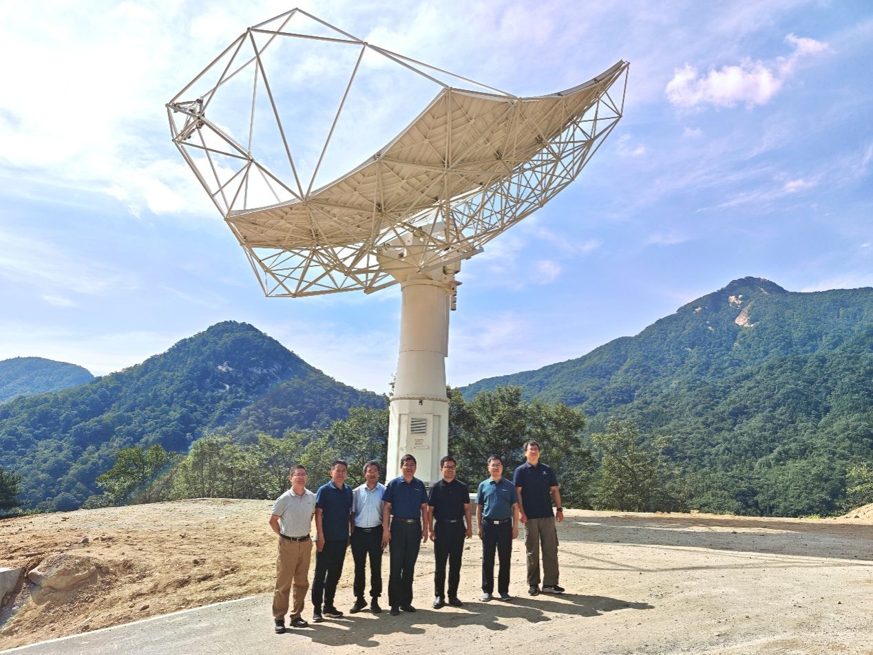 在佛顶寨组,邓建松实地调研龙马天文台15米射电望远镜建设进度。2024年8月15日,学校与中国电科网络通信研究院、金寨县人民政府签署15米射电望远镜天文台产学研项目合作框架协议;在各方的通力协作下,龙马天文台于当年12月13日举行奠基仪式。据悉,龙马天文台15米射电望远镜预计于今年年底建成出光;与此同时,当地党委、政府正全力开展“四级营地”配套设施建设,以科文农旅融合发展打造天文、科普研学旅游基地。