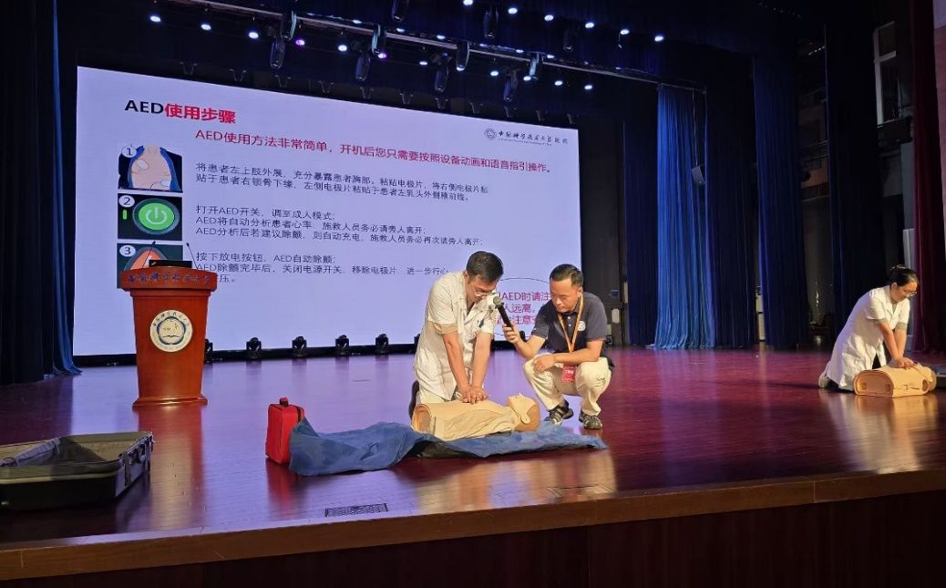 9月6日上午,校医院、党委学生工作部(处)、人武部、校团委在学校东区大礼堂联合举办“艾滋病防治知识与院前单人心肺复苏及AED使用”培训活动,2025级全体本科新生参加培训。