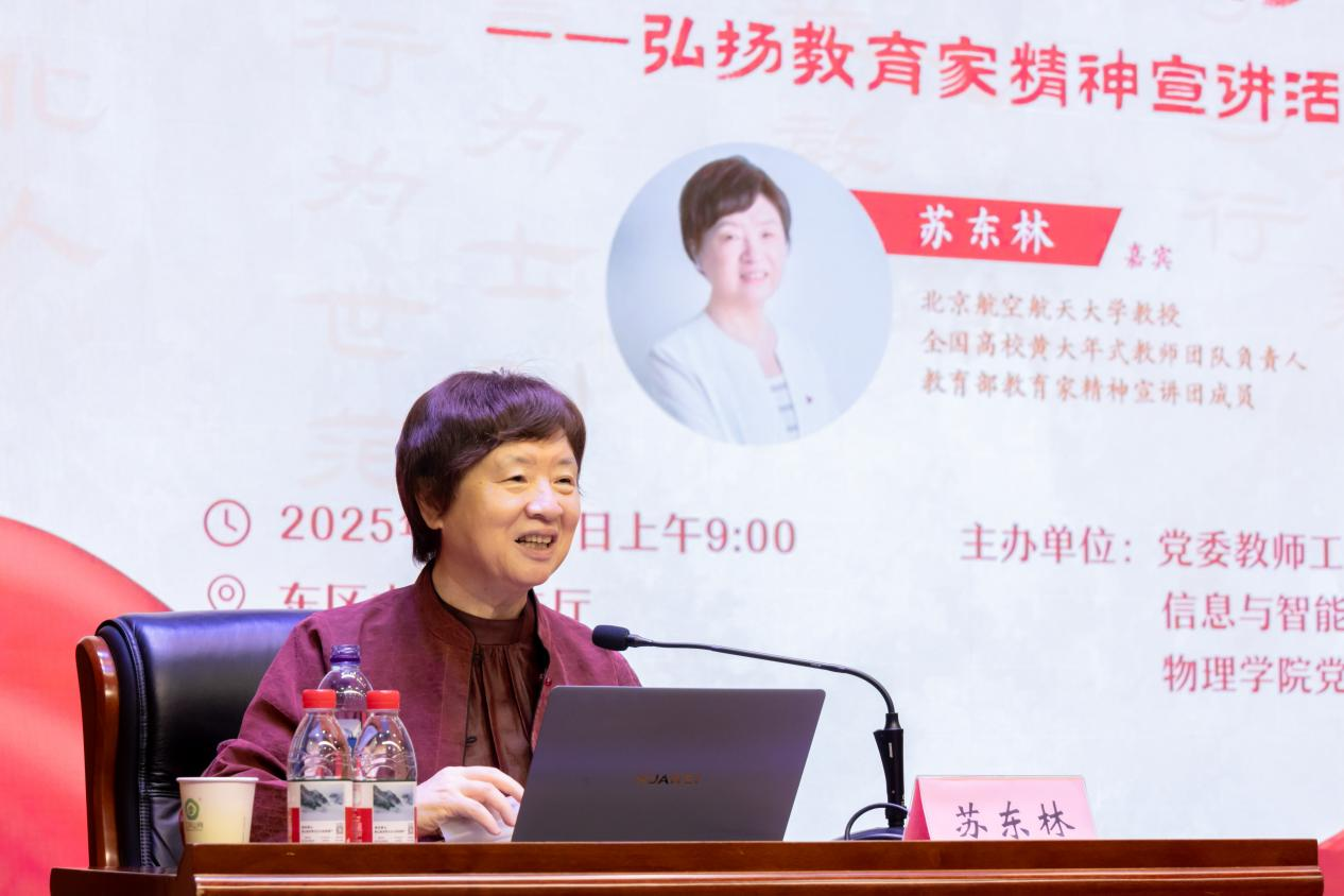 在67周年校庆来临之际,为大力弘扬教育家精神,加强教师队伍建设,9月19日上午,学校邀请教育部教育家精神宣讲团成员、全国黄大年式教师团队负责人、全国最美教师团队负责人,北京航空航天大学苏东林教授来校开展教育家精神宣讲活动。校党委常务副书记蒋一主持活动,信息与智能学部、物理学院等单位200余位教师代表现场参加活动。