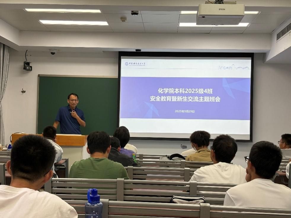 2025年9月29日晚,化学与材料科学学院2025级全体本科班开展“校风传承”主题班会,围绕思想引领、学业规划与科研融入三大核心,为新生筑牢理想信念根基、明确大学奋斗方向。在校的学院和系领导班子成员到会与同学们深入交流,凝聚师生情感、赓续科大精神。