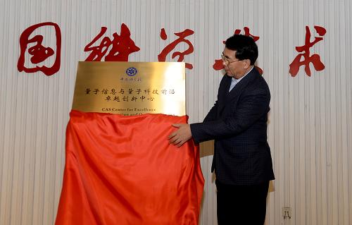 1月15日,中国科学院院长白春礼为中国科学院量子信息与量子科技前沿卓越创新中心揭牌。当日,中国科学院量子信息与量子科技前沿卓越创新中心在合肥中国科学技术大学内揭牌成立。这也是中科院首批5个卓越创新中心中第一个揭牌的中心。新华社记者 郭晨 摄
