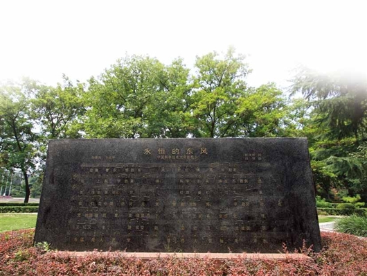 ¡¡¡¡¹ùÄÈô¹ã³¡µÄ¶«±±½Ç£¬ÓÐ×ùУ·ç¼ÍÄî±®£¬±³ÃæïÔ¿Ì׎¨Ð£Ê±µÄУ¸è¡¶ÓÀºãµÄ¶«·ç¡·¡£ËäÈ»¸è´ÊÖÐÓÐһЩ¹ýÖØµÄÀúÊ·ºÛ¼££¬µ«´Ó¡°°ÑºìÆì²åÉÏ¿ÆÑ§µÄ¸ß·å¡±¡¢¡°ÇÚ·Üѧϰ¡±¡¢¡°Àíʵ½»ÈÚ¡±¡¢¡°ÓÖºìÓÖר¡±µÈ±íÊöÖУ¬È´ÓÖ¿´µÃ³öÖйú¿Æ´ó´«³ÐµÄ°ìѧ˼·¡£