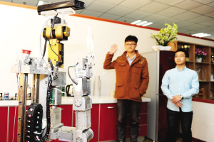 15日,由中国科学技术大学自主研制的“可佳”智能服务机器人进行家政服务的公开演示。机器人“可佳”可识别并记忆用户的外表特征,根据用户的口头指令自动寻找用户指定的物品并交给用户。在整个服务过程中,用户可以自由走动并改变位置和姿态,机器人“可佳”可完全自主地完成任务,不需要人工干预。据悉,中科大“可佳”智能服务机器人的研发为实现机器人保姆梦迈出了重要的一步。新华社发