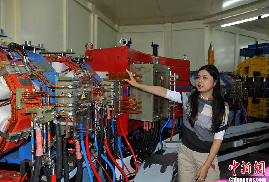 10月23日,中国科学技术大学国家同步辐射实验室,工作人员介绍实验设备装置。该实验室是1983年中国批准建设的第一个国家实验室,目前正在实施提升性能指标的升级改造任务,升级改造共投资1.9亿元人民币,预计2014年上半年验收,目标是光强提高50倍,实验能力比改造前提高近50倍。中新社发 孙自法 摄